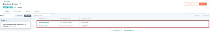 Step 1: Navigate to this HubSpot list to view potential duplicate broker records:
