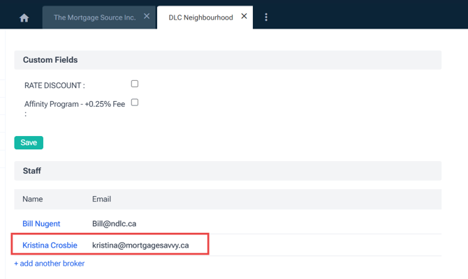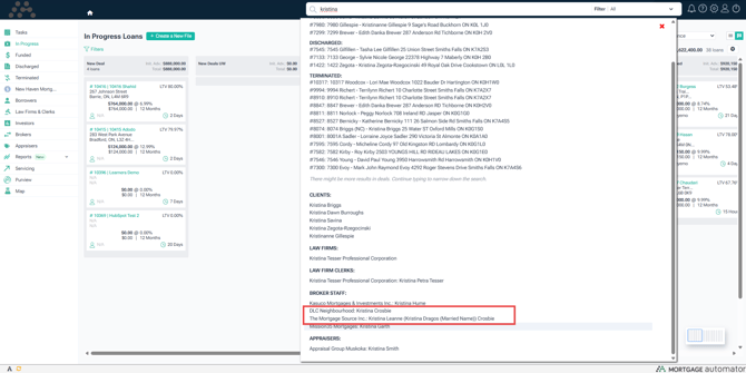 Step 4: Open each Brokerage record and open the broker staff record for 'Kristina Crosbie' from these Brokerage.