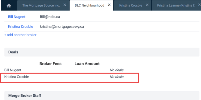 Once loans are consolidated under the primary record, delete the duplicate broker staff record.