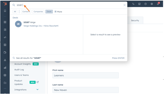 Step 5: Paste the copied MA Loan ID into the Global Search Bar in HubSpot.